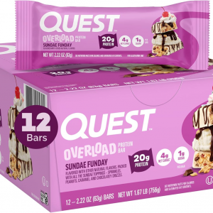 Nutrition Overload Protein Bars, Sundae Funday, 20G Protein, 1G Sugar, 4G Net Carbs, Gluten Free, 12 Count