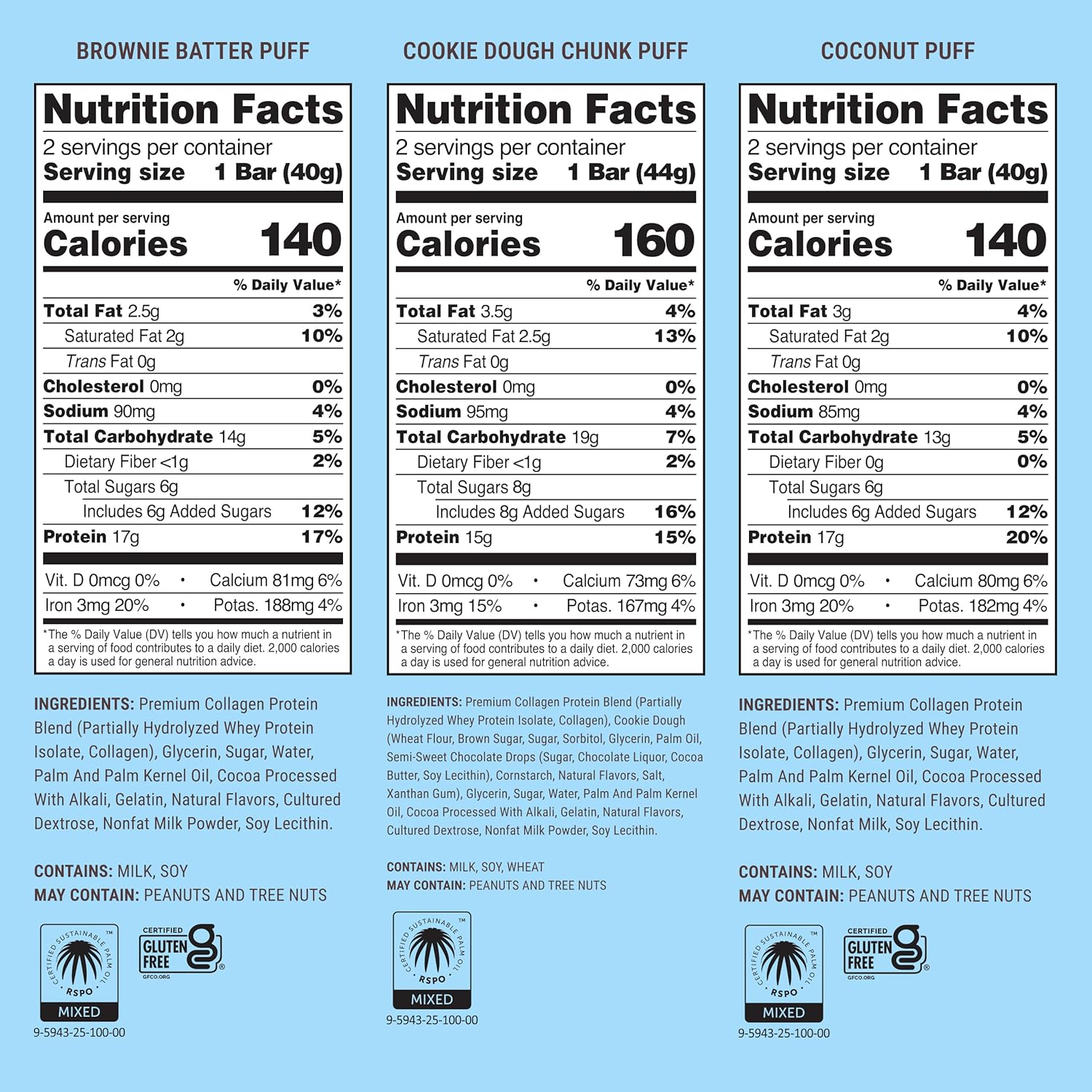 - PLUS COLLAGEN: Built Puffs are unique protein bars because they contain collagen peptides and protein. Helps support the health of your joints, hair, and nails.