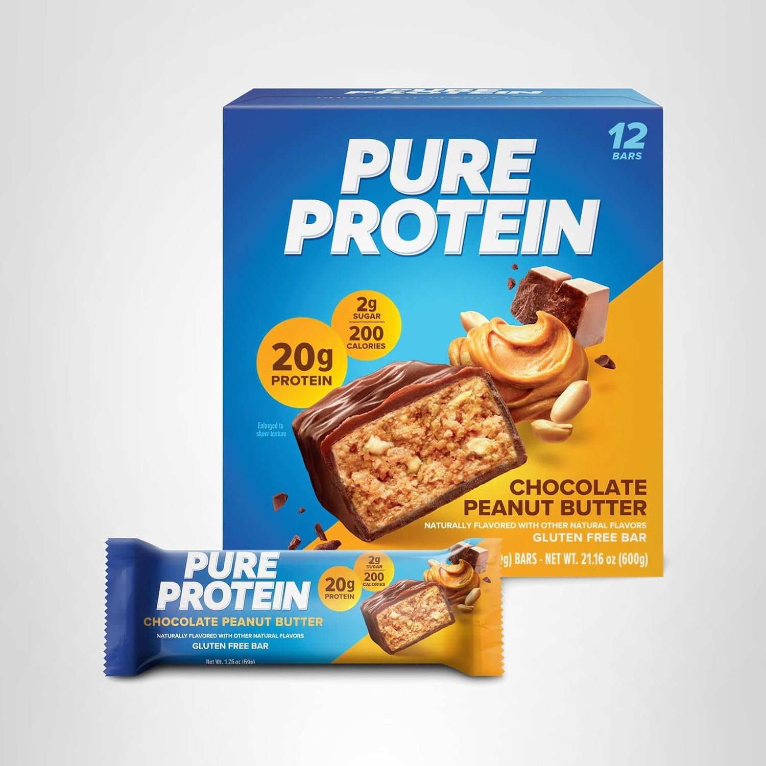 • DELICIOUS HIGH PROTEIN BAR: Pure Protein Chocolate Peanut Butter Bars are full of flavor and contain 20g of protein for lasting energy. Each delicious bar is gluten free with high-quality protein that helps build lean muscle and strength.
