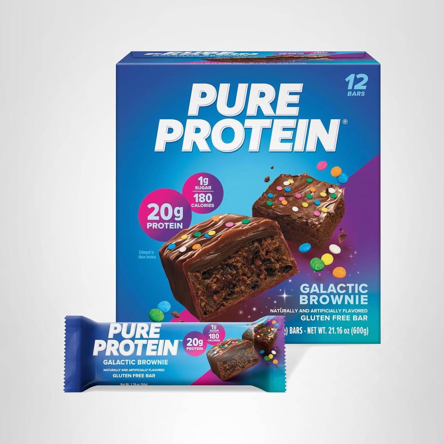 Pure Protein Galactic Brownie Bars – 12 Count Box | 20g High Protein, Gluten-Free, On-the-Go Snack | Ideal Pre & Post-Workout Fuel | Low Sugar, Great Taste!